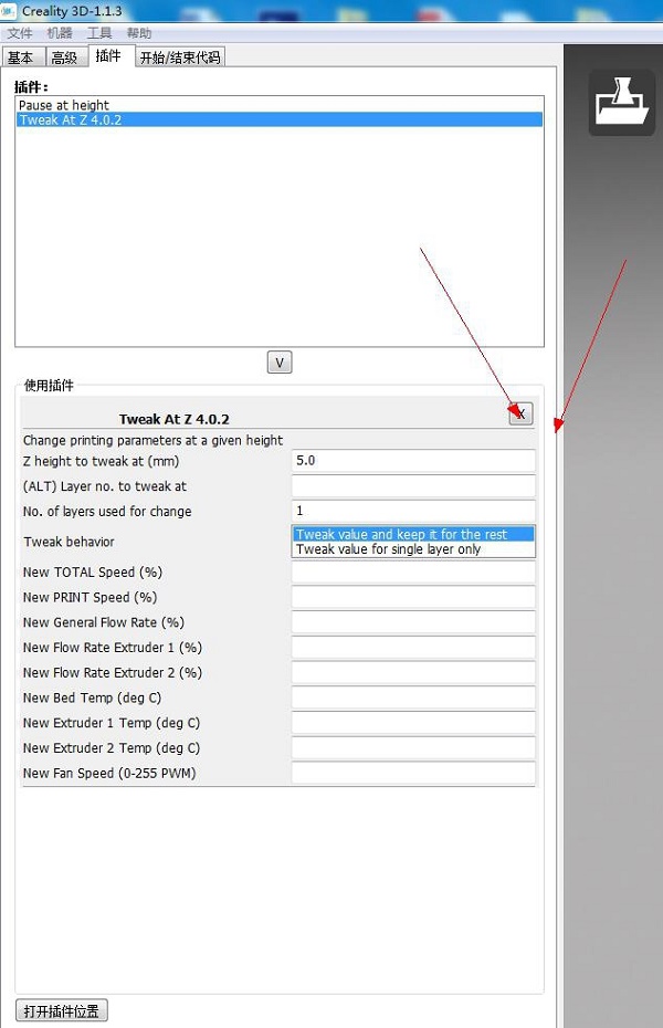 若暫停后屏幕左下角顯示 waiting for user...,則將切片軟件中的插件刪除即可,如下圖拉寬點才可以看到那個關閉按鈕,點那個X把所有插件關閉掉,再生成打印文件就可以了 。